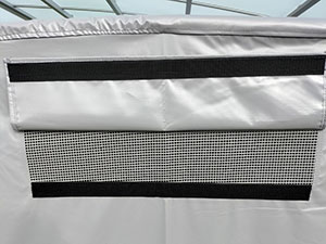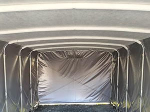 | 前幕のみ通風口メッシュ加工 (ガレージ内の空気を流して湿気や結露を防ぎます。) |